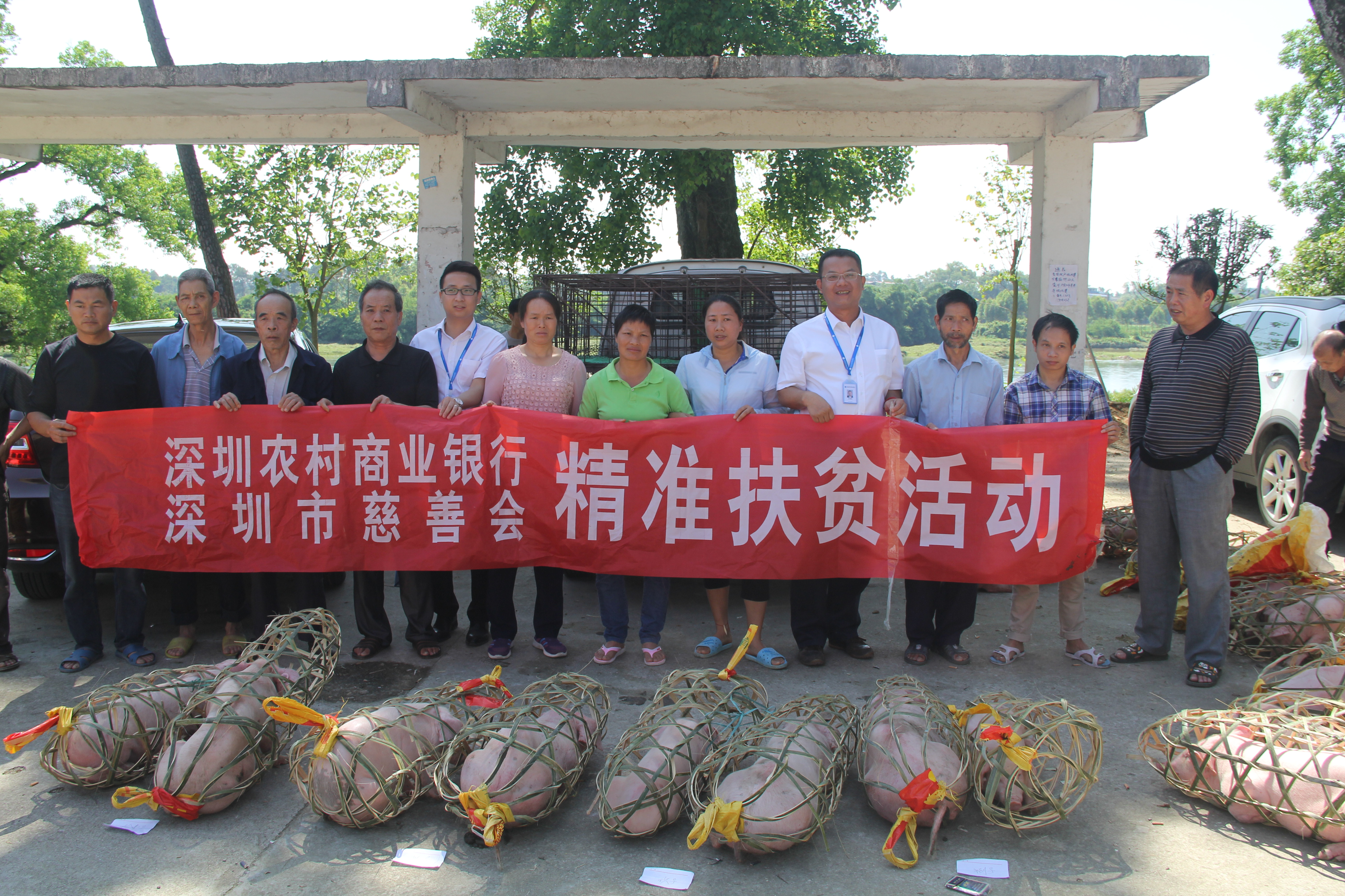 2017年,深圳農(nóng)商行的廣西6家機(jī)構(gòu)開展了“深桂心連心”精準(zhǔn)扶貧活動(dòng),向所在地貧困戶免費(fèi)發(fā)放農(nóng)業(yè)生產(chǎn)資料,通過采購等值的農(nóng)資(如雞、鴨、豬崽、農(nóng)作物種子與樹苗等)按戶發(fā)放給扶貧對(duì)象,待雞、鴨、豬崽和農(nóng)作物可出售時(shí)由廣西各機(jī)構(gòu)介紹銷售或負(fù)責(zé)回購,確保扶貧對(duì)象既能脫貧,又能提高致富能力。深桂心連心精準(zhǔn)扶貧活動(dòng),共資助了299戶貧困戶,扶貧總投入為292879元。通過扶貧活動(dòng),帶動(dòng)更多的貧困戶依靠辛勤勞動(dòng),脫貧致富。