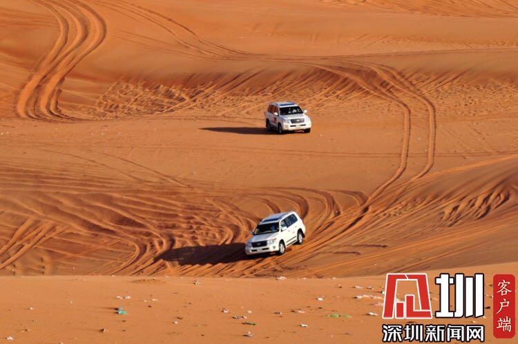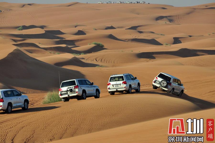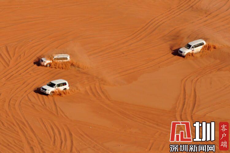 去迪拜,一個最不可錯過的體驗項目就是"沖沙"。所謂沖沙,就是高速的車在沙丘里不斷爬坡、俯沖、騰飛、落下等等一系列驚險的動作。李仁奇攝