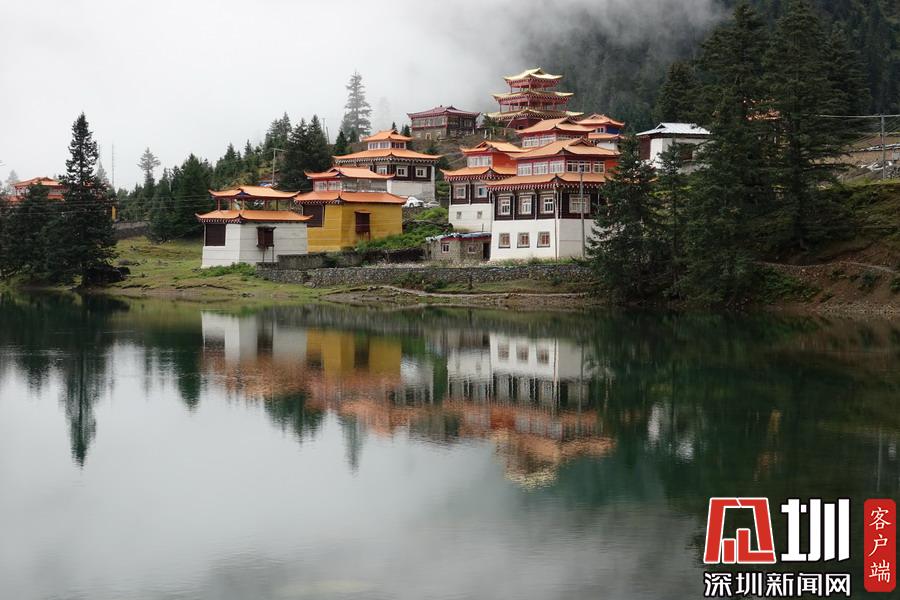 湖的四周是森林和由措卡寺寺僧主持修建的藏傳佛教各色建筑,它們時而云遮霧障,時而與藍(lán)天白云一起倒映在湖中。李仁奇攝