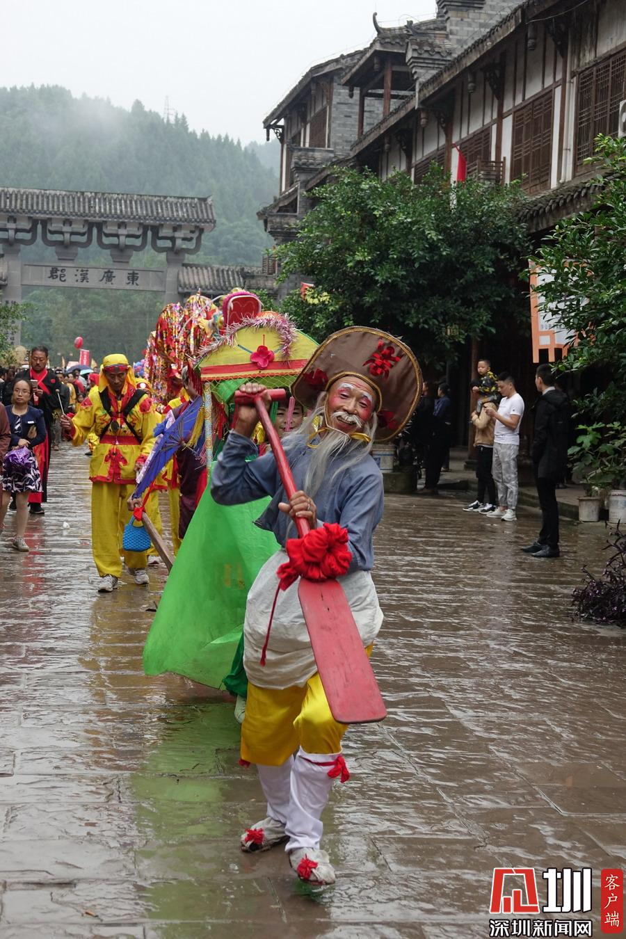 郪江古鎮(zhèn)古典風格的迎賓儀式和民俗風情展示。李仁奇攝