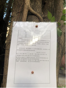 行道樹(shù)上貼的工程告示