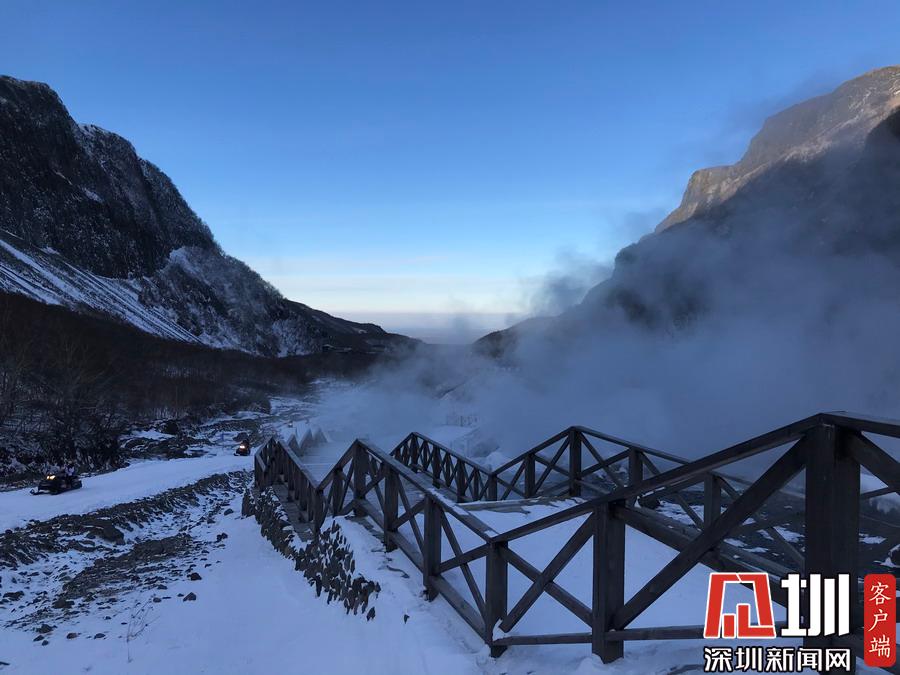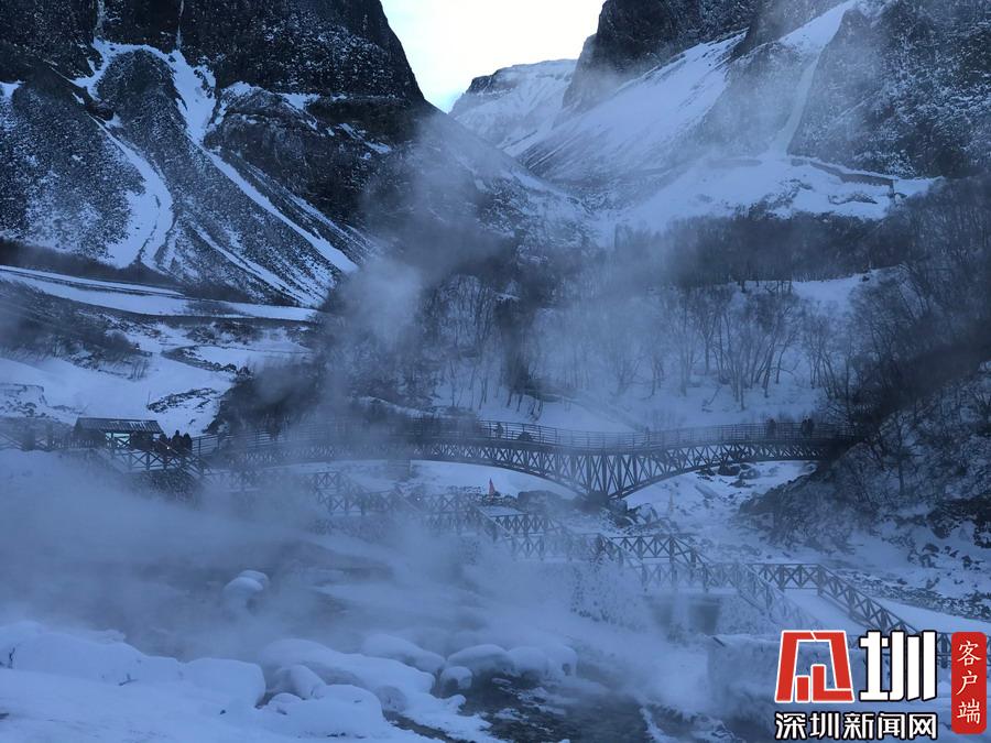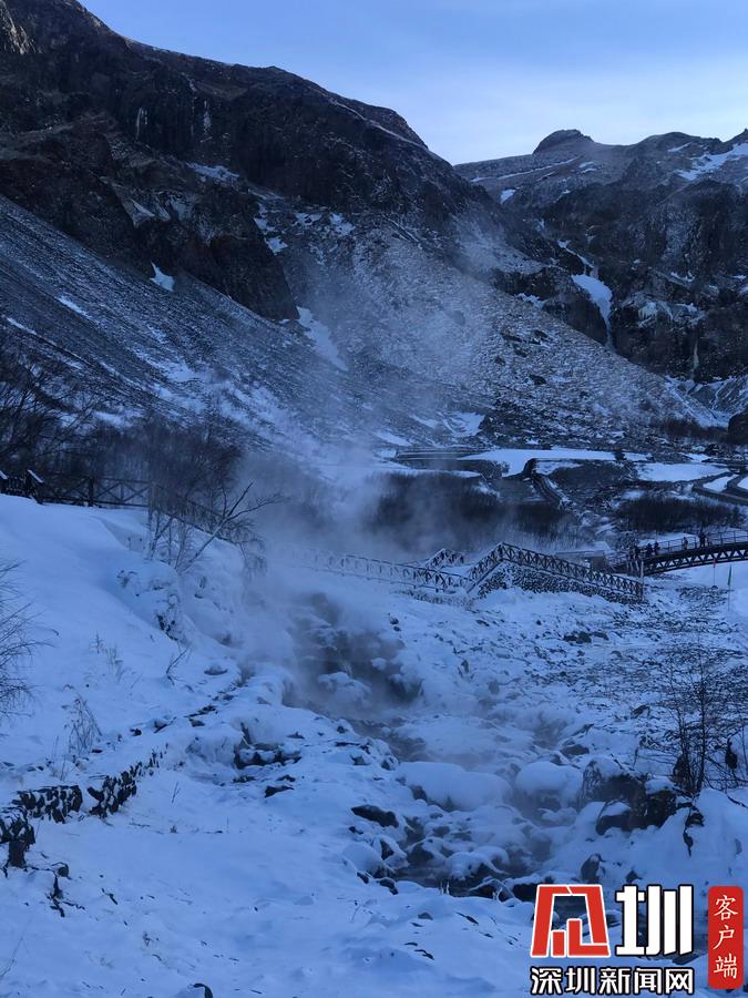 周圍一片銀裝素裹,冰天雪地,而這里熱氣騰騰,煙霧裊裊,實在是別有一番景致。