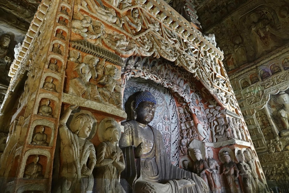 石窟依山開(kāi)鑿,東西綿延約1公里。存有主要洞窟45個(gè),大小窟龕252個(gè),石雕造像51000余軀,還有部分北魏時(shí)期的壁畫(huà),為中國(guó)規(guī)模最大的古代石窟群之一。李仁奇 攝
