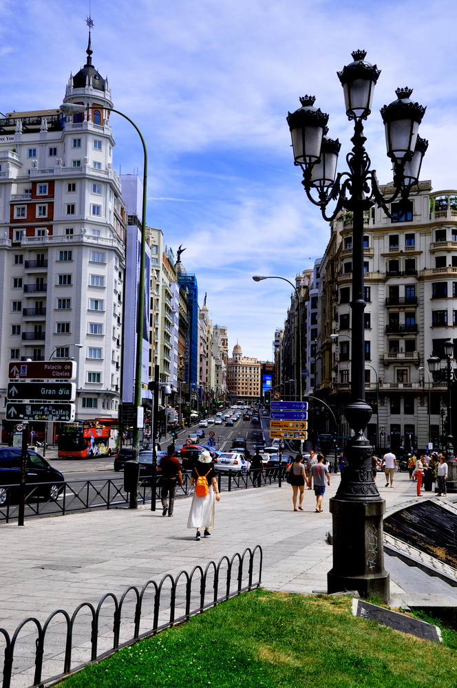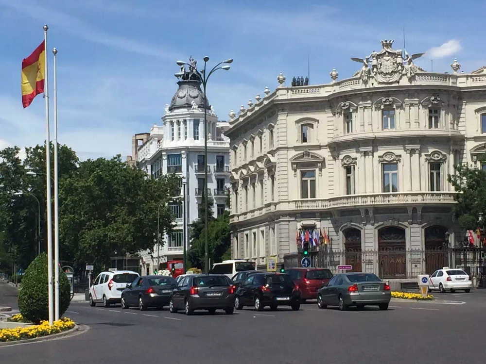 馬德里不像巴塞羅那那樣擁擠熱鬧,街道寬闊、建筑漂亮、市容整潔、綠樹成蔭。街道馬路上行人車輛都較少。李仁奇 攝