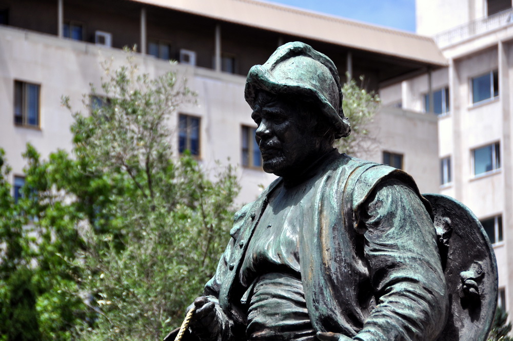馬德里是一個藝術(shù)之都,文藝復興時期西班牙最偉大的作家塞萬提斯及其小說人物堂吉柯德和仆人桑丘的塑像位于市區(qū)中心,是世界各國游客的打卡之地。李仁奇 攝