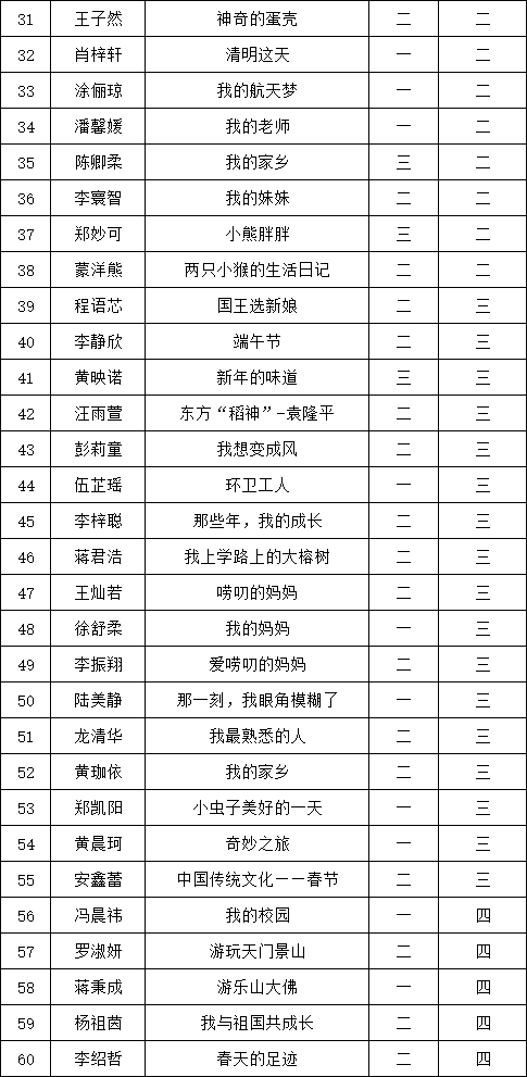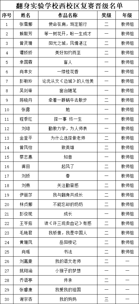 自2021年1月,活動征稿啟動以來,獲得了深圳市廣大中小學生、教師、文學愛好者的熱烈響應積極參與,吸引了深圳百余所學校的上萬人關(guān)注報名。現(xiàn)公布翻身實驗學校西校區(qū)晉級復賽名單如下: