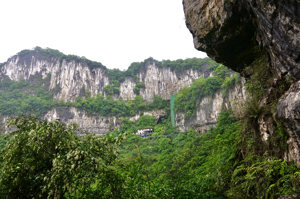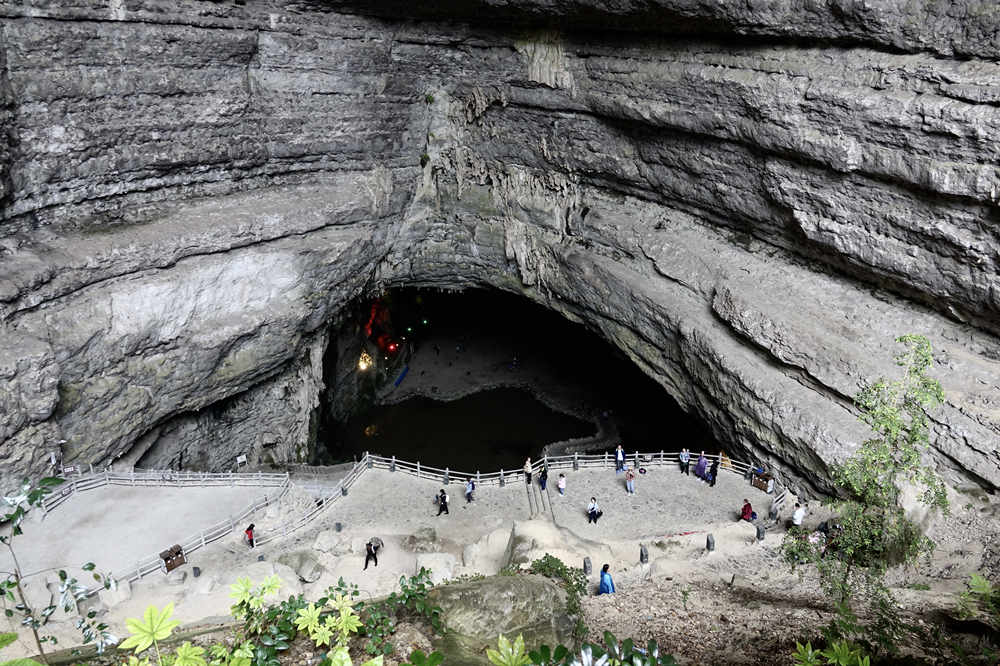 天坑是喀斯特地貌中的一種,它的形成是因?yàn)樗粩嗲治g固體基巖,使溶洞頂部發(fā)生坍塌,最終在地表形成一個(gè)巨大的深坑,這個(gè)深坑就被稱為天坑。李仁奇 攝