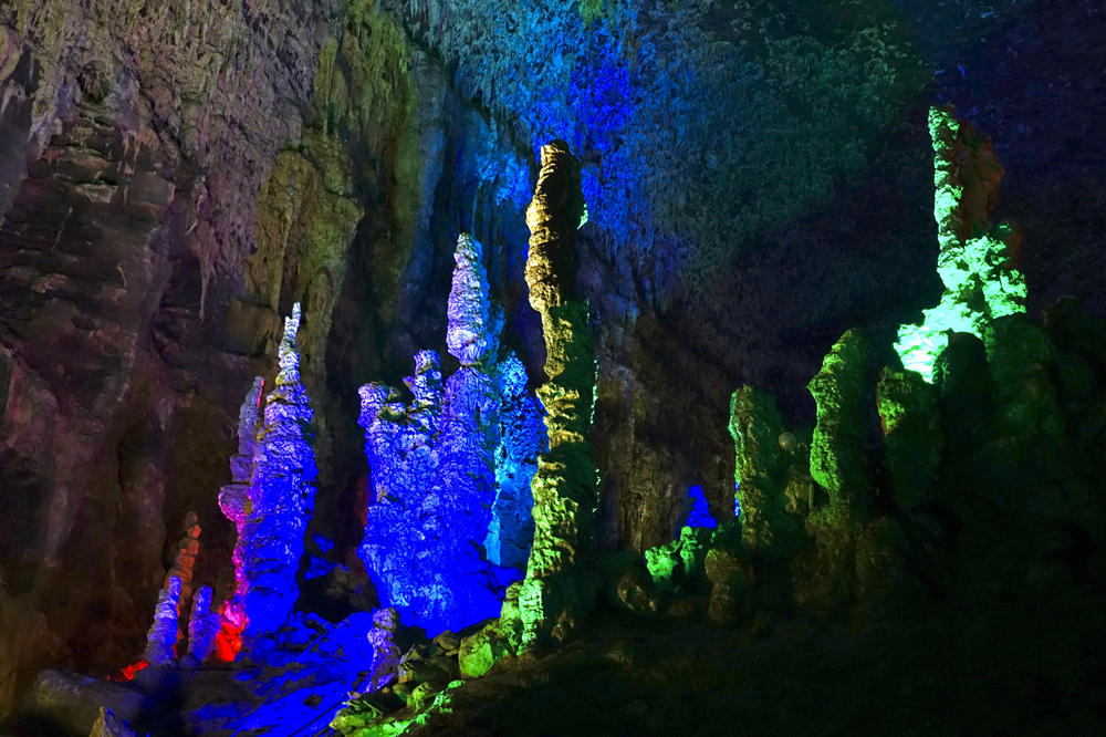 目前已探測(cè)長(zhǎng)度為10.5公里,上下共分四層。洞廳多呈長(zhǎng)廊狀和大廳狀。李仁奇 攝