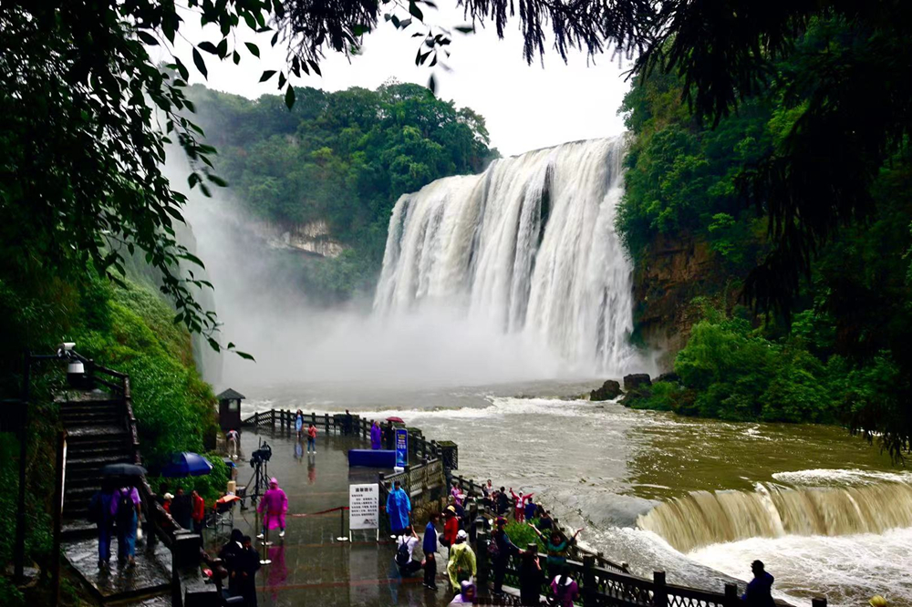 黃果樹瀑布的游客數(shù)以萬計,但是能夠在豐水期觀賞到特別壯觀景象的游客卻是少數(shù)。李仁奇 攝