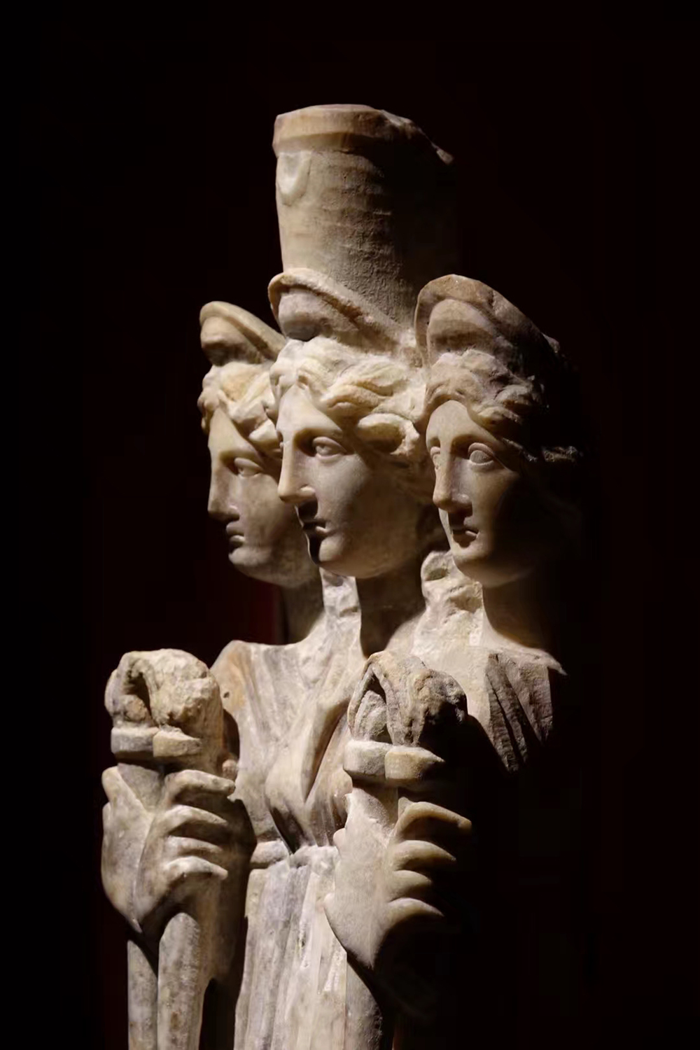 赫卡忒,希臘神話中一位善惡兼?zhèn)涞呐?。在雕塑中有三頭三身六臂,分別向著三個不同的方向,代表了她作為三岔路口守護者的角色。李仁奇 攝