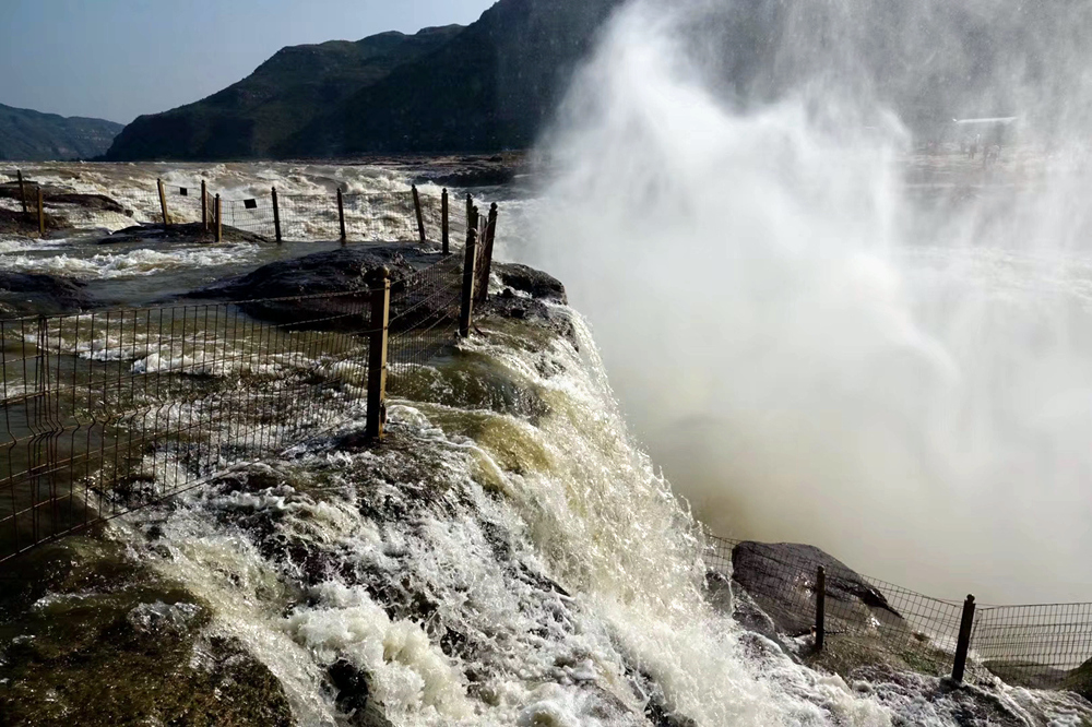 瀑布上游黃河水面寬300米,在不到500米長(zhǎng)的距離內(nèi),被壓縮到20-30米的寬度。1000立方米/秒的河水,從20多米高的陡崖上傾注而下,形成”千里黃河一壺收”的氣概。這也是第四套人民幣50元紙幣背面的取景地。李仁奇 攝