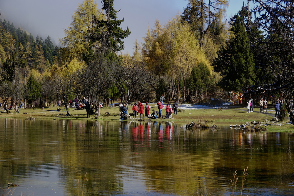 湛藍(lán)的天空下,湖面如鏡,恬靜里散發(fā)出一種意境之美。李仁奇 攝