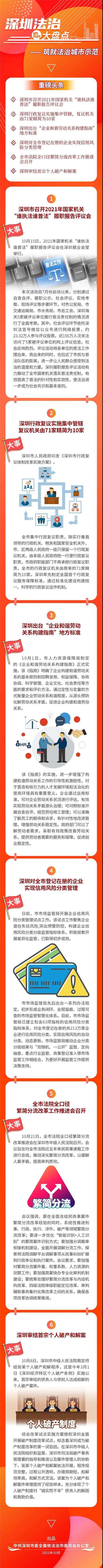 深圳是一座務實尚法的城市。從特區(qū)誕生伊始,法治始終與深圳改革發(fā)展同頻共振,并逐步成為深圳顯著的城市特質之一。進入“雙區(qū)”驅動、“雙區(qū)”疊加的“黃金發(fā)展期”,深圳正肩負建設“法治中國示范城市”的新使命,在法治大道上奮力奔跑,以法治之力為人民幸福生活筑起堅實保障,為優(yōu)質營商環(huán)境提供源頭活水,為科技創(chuàng)新發(fā)展培植深厚土壤。