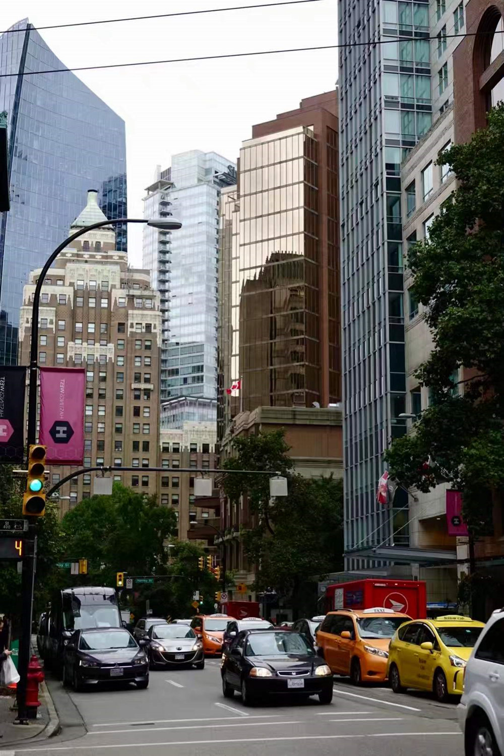 溫哥華市區(qū)依山傍海,林木蒼翠,風(fēng)景秀麗,街道寬闊,高樓林立。大銀行、保險(xiǎn)公司、現(xiàn)代化旅館和零售批發(fā)商店比比皆是。李仁奇 攝