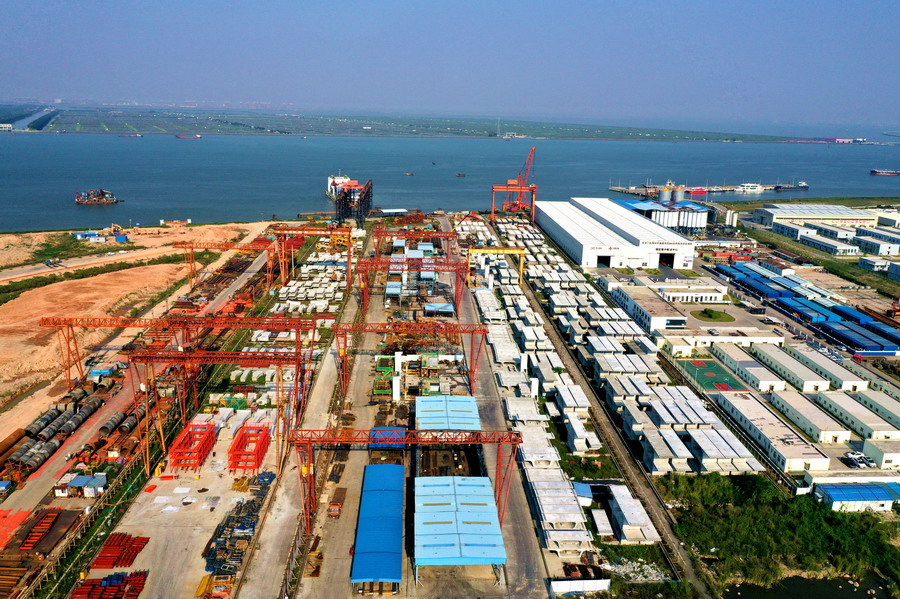 坪鹽通道建設過程中,鹽港東立交裝配式施工圖。(資料圖)