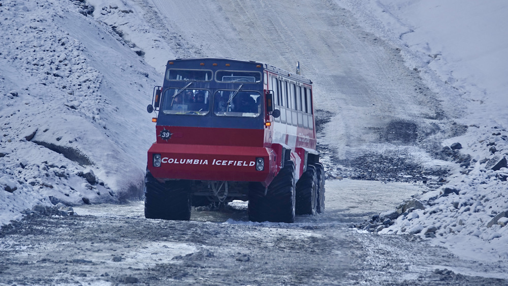 哥倫比亞冰原是北美洲最容易進(jìn)入的冰川群。乘坐特別設(shè)計的“冰原探險家號”全地形旅游巴士,可以輕松踏上長達(dá)六千米的阿薩巴斯卡冰河上的冰原。李仁奇 攝