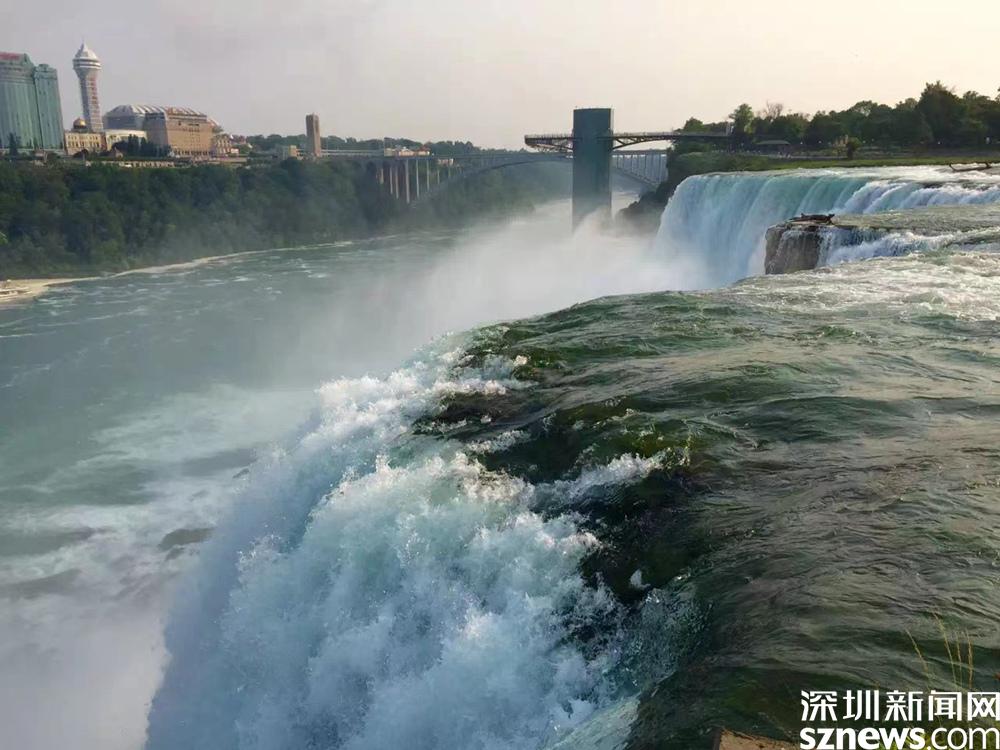 在瀑布兩側(cè),有兩座都叫尼亞加拉瀑布城的姐妹城市,一個隸屬于加拿大的安大略省,另一個隸屬于美國的紐約州,兩城隔河相望。李仁奇 攝