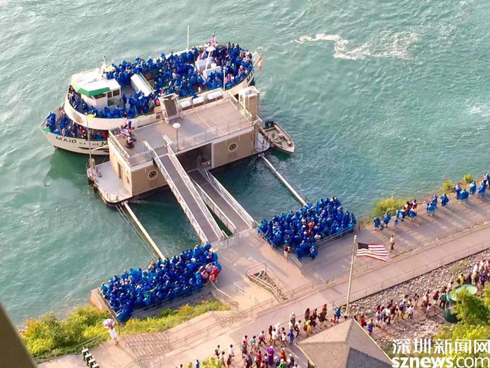 奧尼達(dá)瞭望塔的下面是乘坐“霧中少女號”游輪的碼頭,加拿大的游輪碼頭與它隔河相望。李仁奇 攝