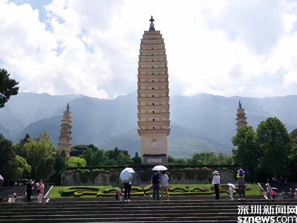 崇圣寺三塔與蝴蝶泉一樣位于洱海西岸,崇圣寺三塔由一大二小組成。李仁奇 攝