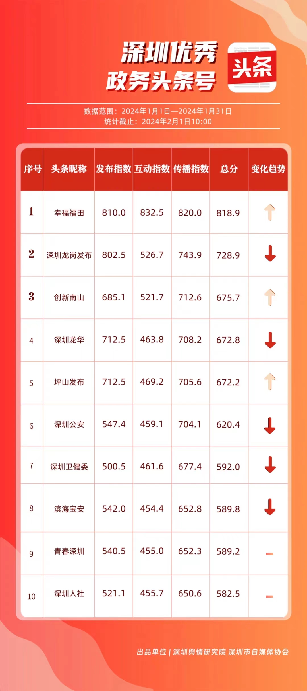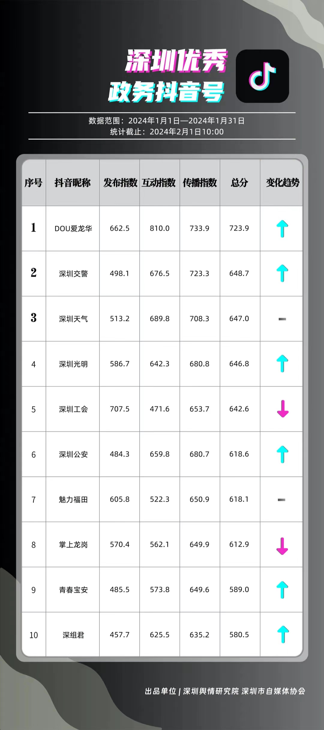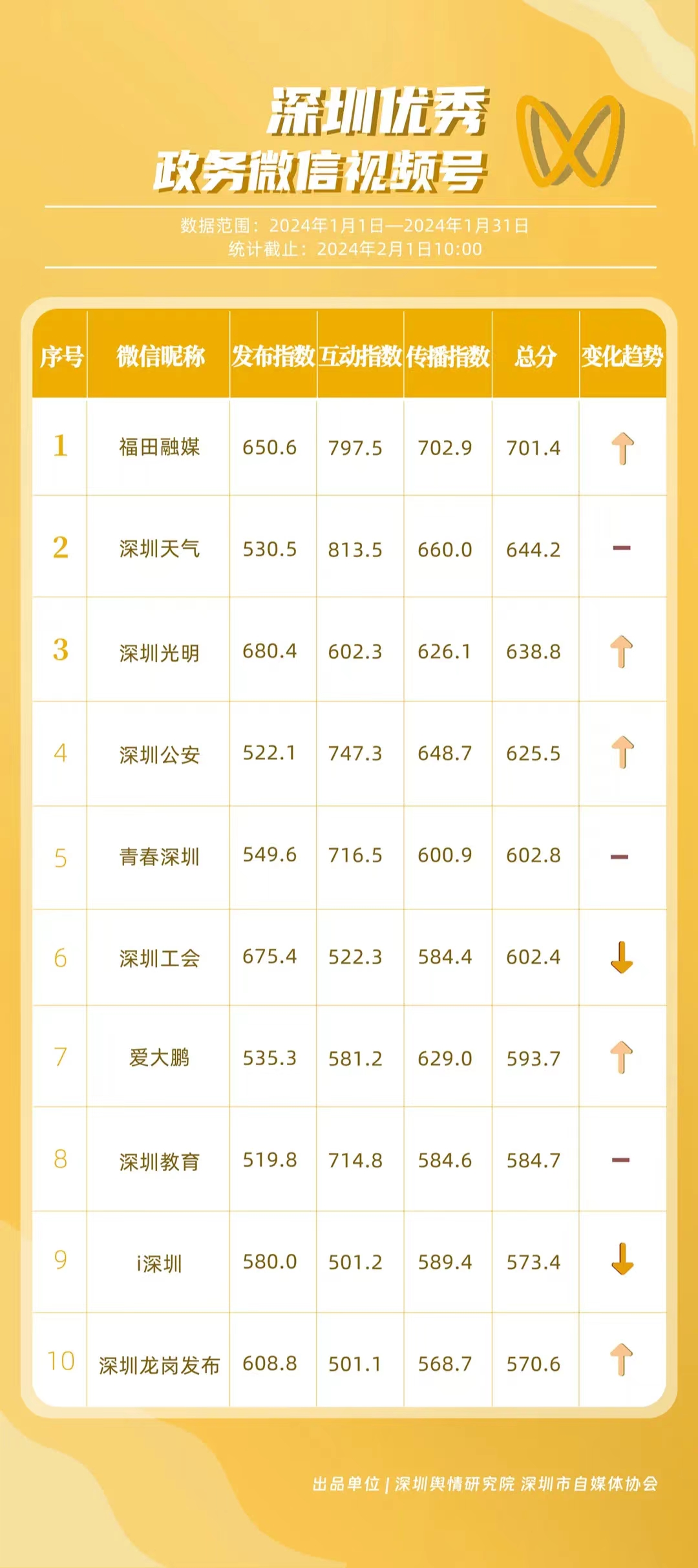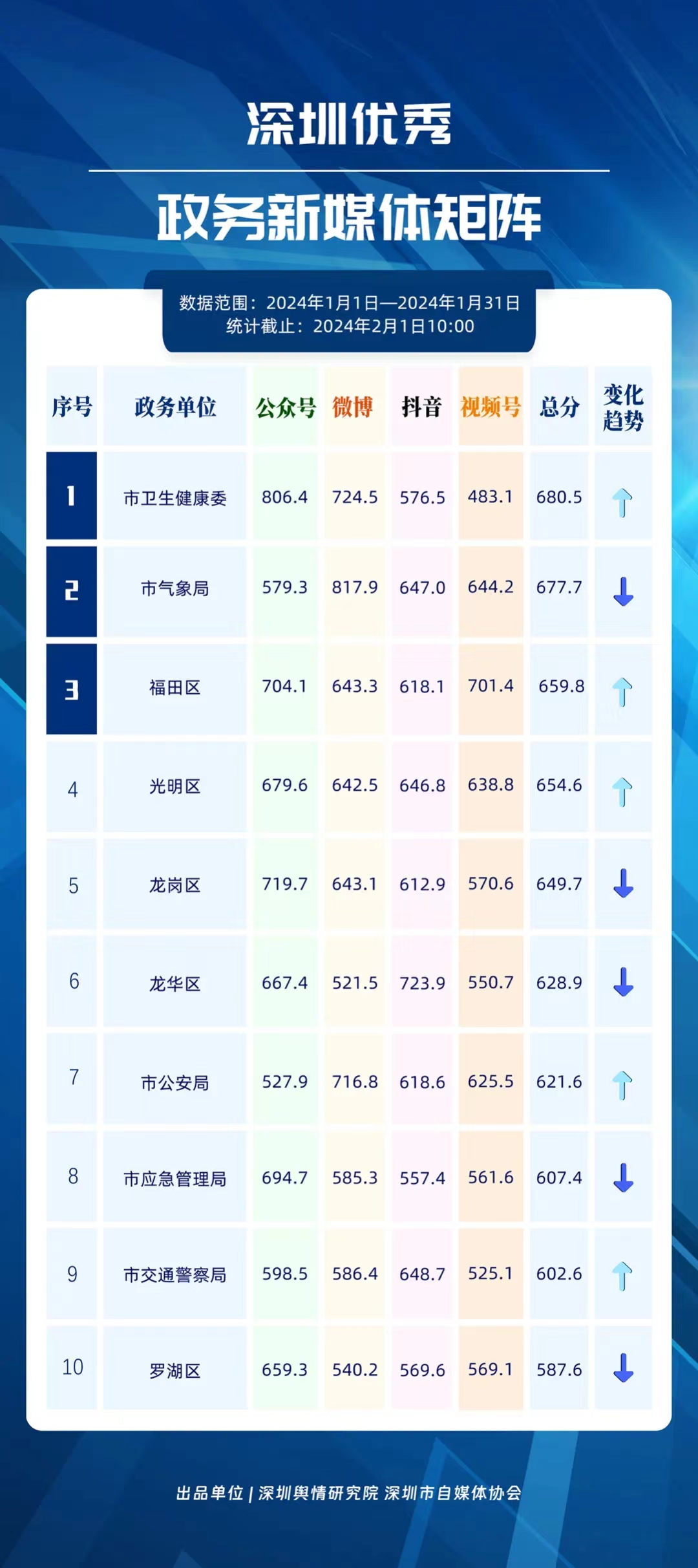 深圳新聞網(wǎng)2月9日訊(記者 陳曉君 實(shí)習(xí)生 張馳)2月8日,深圳輿情研究院、深圳市自媒體協(xié)會聯(lián)合推出《深圳優(yōu)秀政務(wù)新媒體矩陣》(2024年1月期),市衛(wèi)生健康委、市氣象局、福田區(qū)、光明區(qū)、龍崗區(qū)、龍華區(qū)、市公安局、市應(yīng)急管理局、市交通警察局、羅湖區(qū)的新媒體矩陣獲評“深圳優(yōu)秀政務(wù)新媒體矩陣”。這些矩陣在內(nèi)容發(fā)布、受眾互動和信息傳播方面取得了較好成績,并在深圳政務(wù)新媒體規(guī)范有序發(fā)展進(jìn)程中發(fā)揮著積極作用。