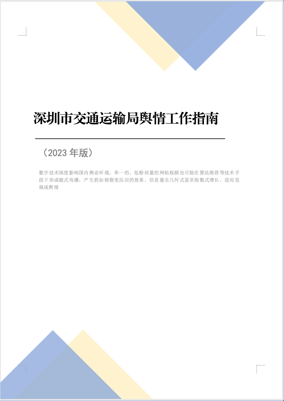 深圳市交通運輸局輿情工作指南