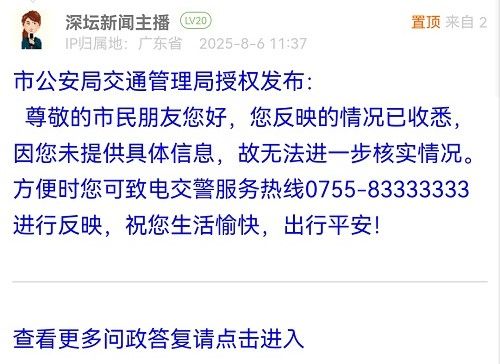 各職能單位如需對(duì)網(wǎng)友反映的問(wèn)題進(jìn)行回應(yīng),可在深圳論壇注冊(cè)官方賬號(hào)并通過(guò)認(rèn)證,回帖進(jìn)行回應(yīng)。
