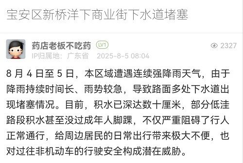 7. 帖文《寶安區(qū)新橋洋下商業(yè)街下水道堵塞》
