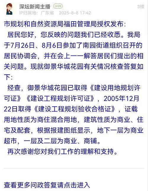 (一)關(guān)于“社區(qū)、街道辦很早就知道此消息,但業(yè)主和住戶一直被蒙在鼓里”:經(jīng)核實(shí),京基御景華城商業(yè)廣場(chǎng)原權(quán)利人深圳市京基房地產(chǎn)股份有限公司(下稱“京基公司”)于今年7月初將產(chǎn)權(quán)轉(zhuǎn)讓給深圳市龍勝電子市場(chǎng)有限公司(下稱“龍勝公司”),龍勝公司計(jì)劃將該商業(yè)廣場(chǎng)升級(jí)改造為二手手機(jī)市場(chǎng),并在相關(guān)視頻賬號(hào)上公開宣傳。相關(guān)經(jīng)營(yíng)主體出售物業(yè)產(chǎn)權(quán),在程序上無(wú)需街道社區(qū)審批同意或到街道社區(qū)備案,街道直至7月中旬才得知該商業(yè)廣場(chǎng)的產(chǎn)權(quán)轉(zhuǎn)讓事宜。
