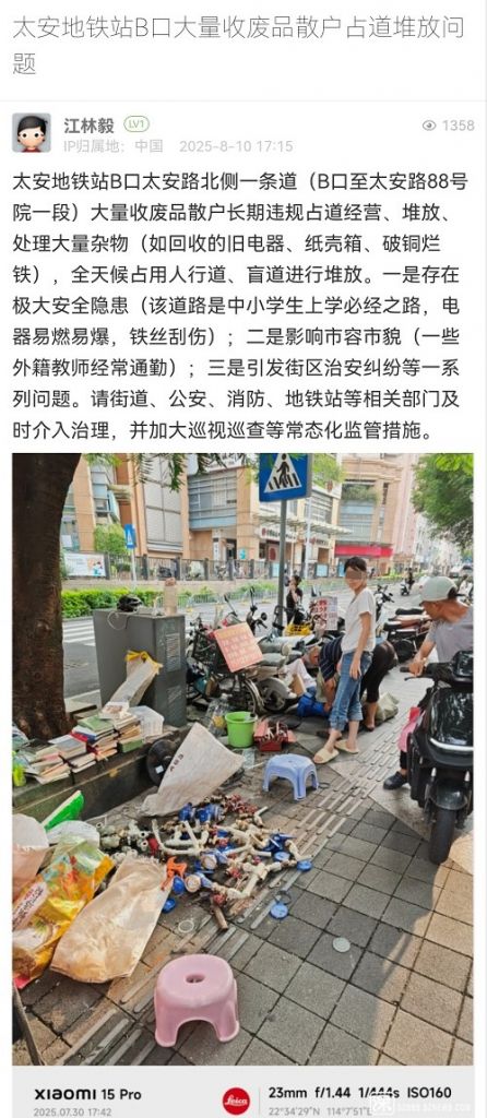 30. 帖文《太安地鐵站B口大量收廢品散戶占道堆放問(wèn)題》