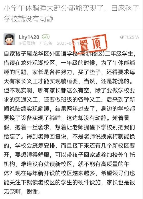 12. 帖文《小學(xué)午休躺睡大部分都能實(shí)現(xiàn)了,自家孩子學(xué)校就沒(méi)有動(dòng)靜》
