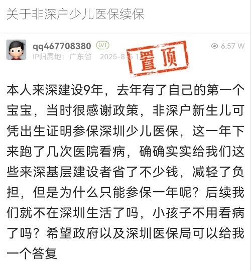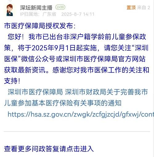 8. 帖文《關(guān)于非深戶少兒醫(yī)保續(xù)保》