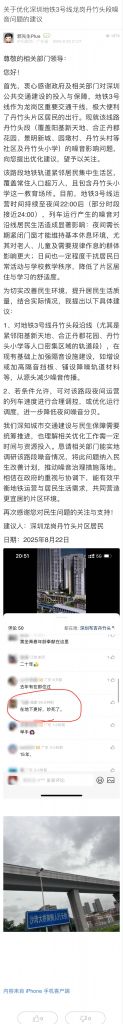 33. 帖文《關(guān)于優(yōu)化深圳地鐵3號(hào)線龍崗丹竹頭段噪音問(wèn)題的建議》