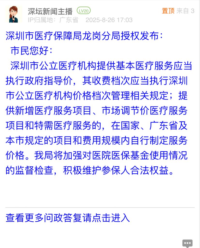 涉及單位:深圳市醫(yī)療保障局龍崗分局