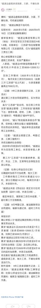 39. 帖文《*越速運(yùn)虛假承諾高薪、欠薪、不繳社保》