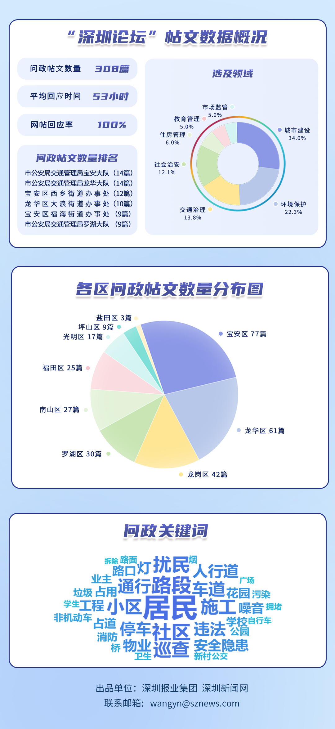 為探尋媒體如何精準(zhǔn)賦能基層治理現(xiàn)代化的“深圳路徑”,深圳報(bào)業(yè)集團(tuán)正式掛牌成立“問政深圳”工作室,旨在進(jìn)一步推動(dòng)網(wǎng)絡(luò)問政工作的高效開展。為確保相關(guān)工作更加契合實(shí)際需求,深圳報(bào)業(yè)集團(tuán)深圳新聞網(wǎng)按照“最快速度辦結(jié)”的總體要求,將原有月度榜單創(chuàng)新升級(jí)為“問政深圳紅黑榜”,并對(duì)評(píng)分體系進(jìn)行了細(xì)致優(yōu)化。該榜單從答政量、回應(yīng)率、響應(yīng)時(shí)效及解決成效等多個(gè)維度,對(duì)深圳各級(jí)黨政機(jī)關(guān)及公共企事業(yè)單位進(jìn)行答政實(shí)效評(píng)議,力求打造政府與媒體攜手共進(jìn)、創(chuàng)新基層治理現(xiàn)代化的新樣板,從而更好地回應(yīng)人民群眾對(duì)美好生活的熱切期盼。