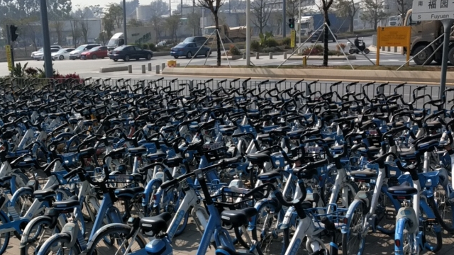 寶安福園一路密密麻麻堆積大量小藍(lán)車,回應(yīng):已完成整改
